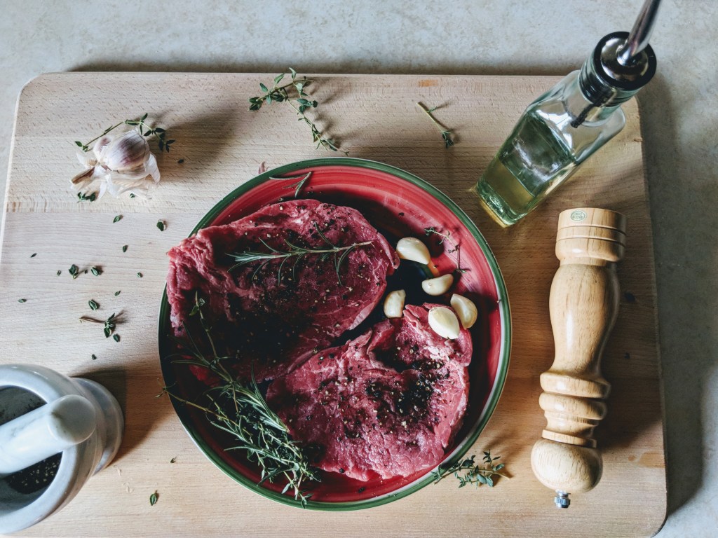 - Season steak with salt and pepper to taste.
